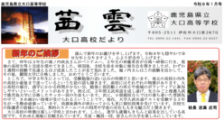 大口高校 「茜雲」1月号の紹介 大口高校東京同窓会の皆さま,明けましておめでとうございます。今年もどうそよろしくお願いします。さて,ふるさと伊佐では,今年は郷土の英雄である新納忠元公生誕500周年を迎え、様々なイベントが計画されており、年間を通して大いに盛り上がっていこう... 2026.01.22 大口高校