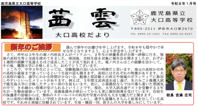 故郷を離れて活躍されておられる同窓生の皆さまにおかれましても、引き続き母校と後輩を見守ってくださいますようお願いいたします。