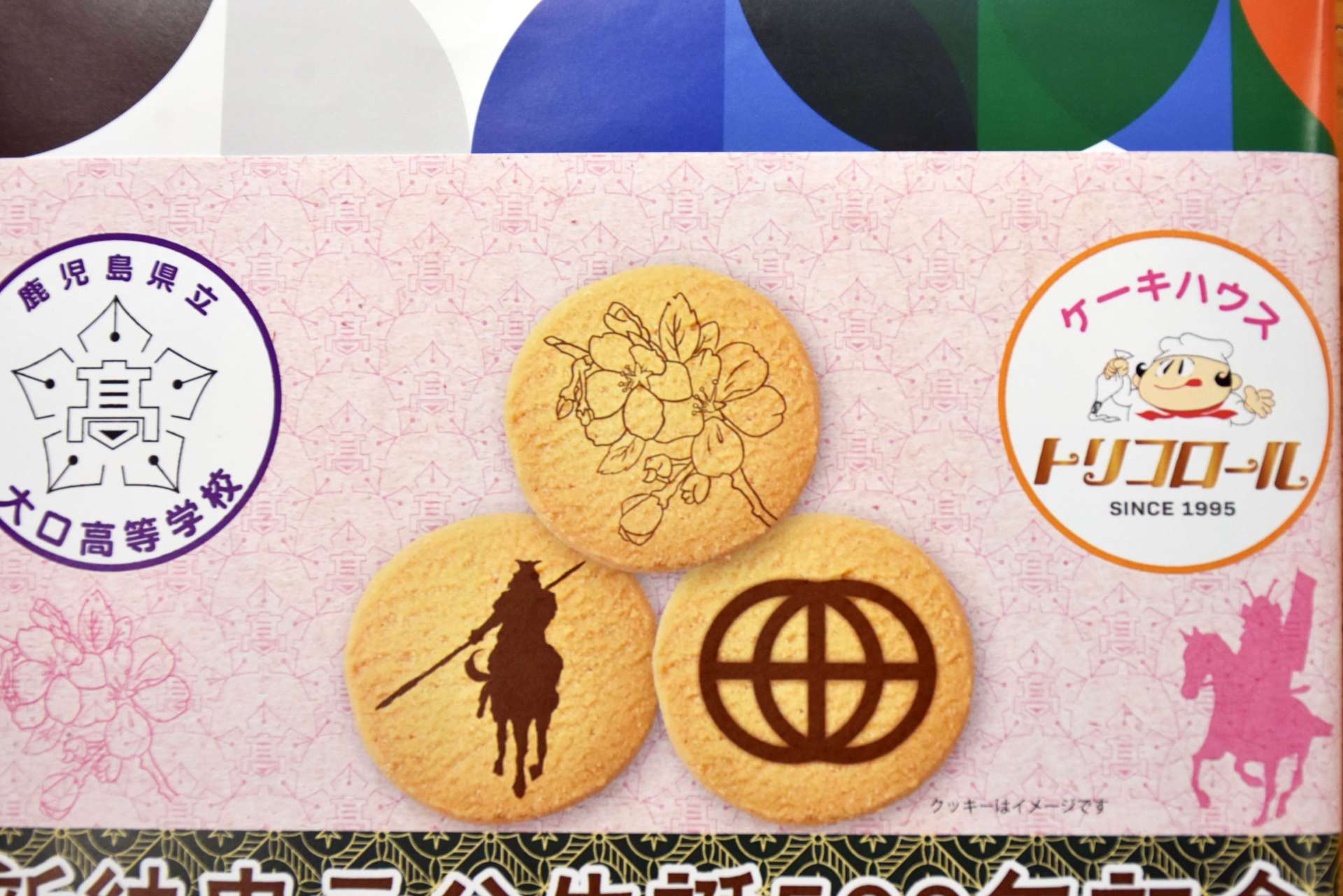 鹿児島県伊佐市の大口高校は、今年生誕500年を迎える地元ゆかりの戦国武将、新納忠元にちなんだクッキーを作った。伊佐米を使った同校米(マイ)クッキーの第3弾で、馬上でやりを持つシルエット、家紋、忠元